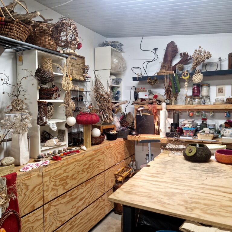 Le métier de feutrière, rare en France, confère à son travail une singularité forte. Evelyne combine de façon innovante les techniques de tressage et le feutre de laine, donnant vie à des créations authentiques et distinctives. Passionnée par la transmission, elle anime des ateliers d’initiation pour faire découvrir ce savoir-faire ancestral.